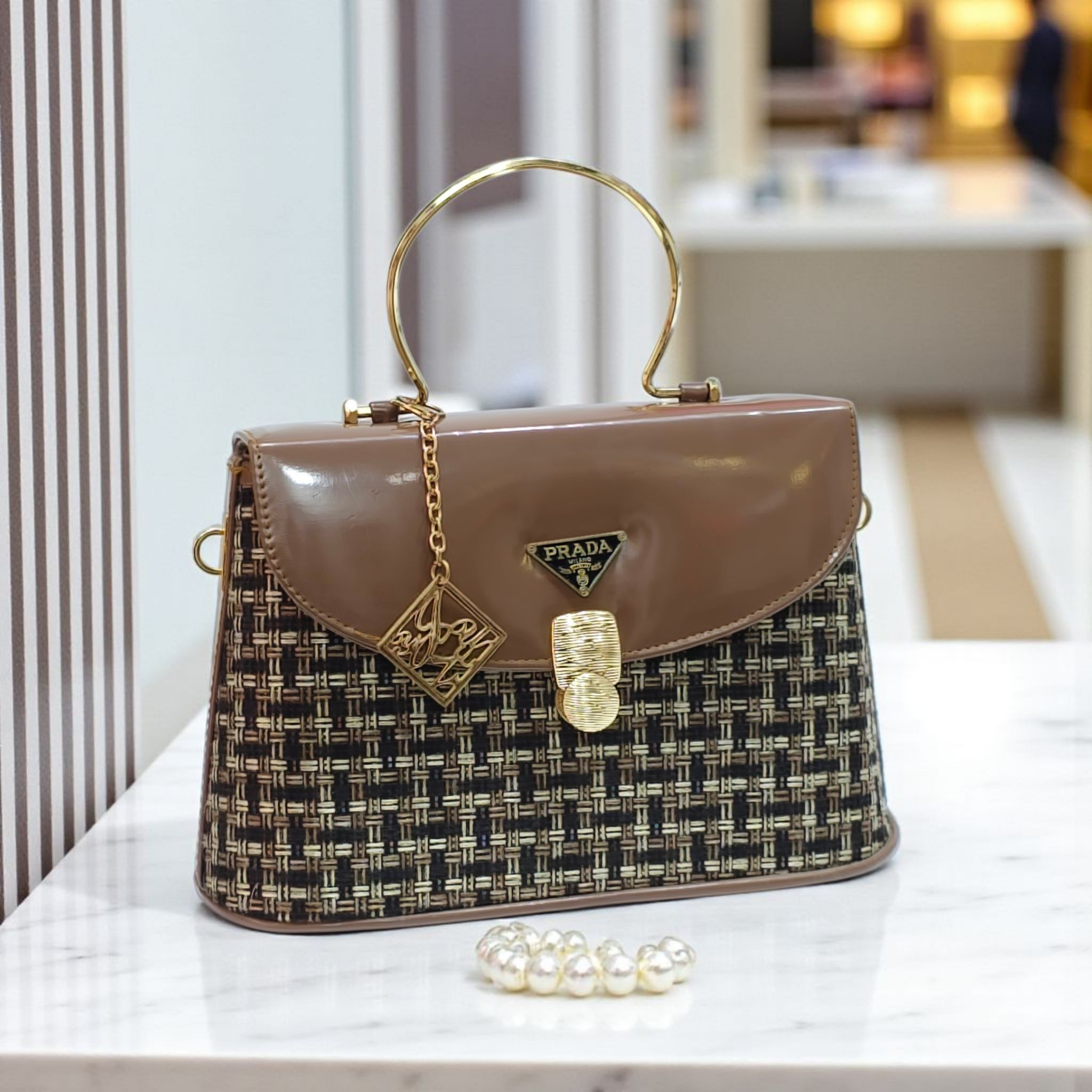 • تصميم هيكلي متين: تتميز الشنطة بشكل صندوقي مستطيل يحافظ على هيئته دائمًا، مع حواف بارزة ومحبوكة تضيف عمقًا وتعقيدًا للتصميم.